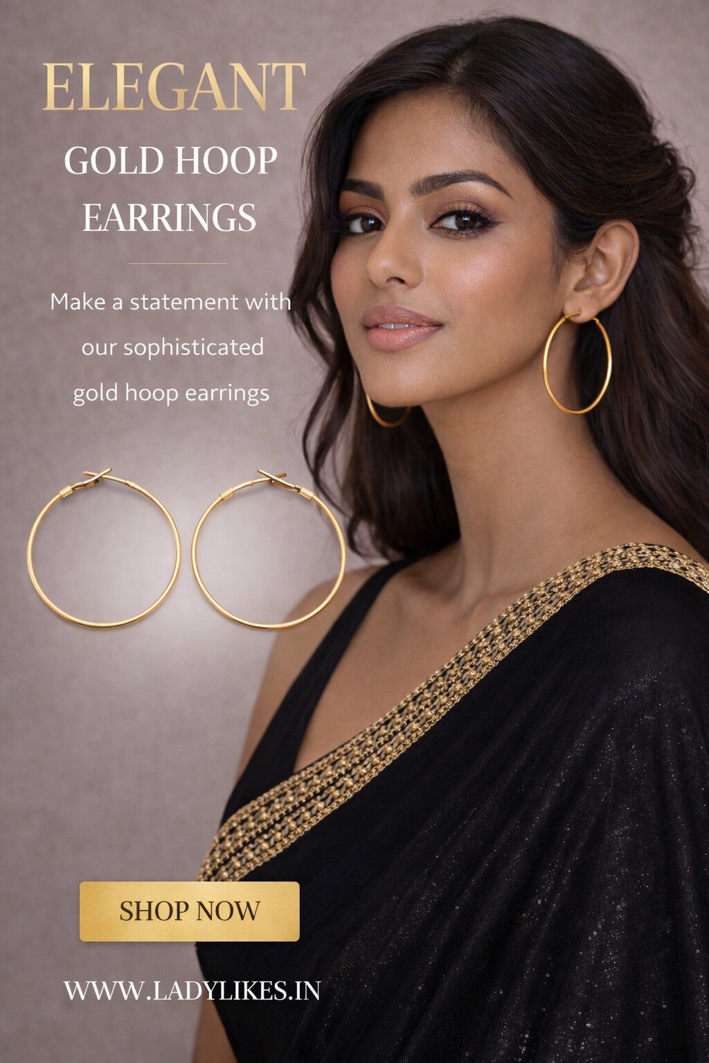 Lightweight and comfortable, these classic gold hoop earrings are perfect for daily wear, office styling, casual outings, or evening looks. Their versatile design pairs seamlessly with sarees, kurtis, dresses, and western wear, making them a go-to accessory for every occasion.