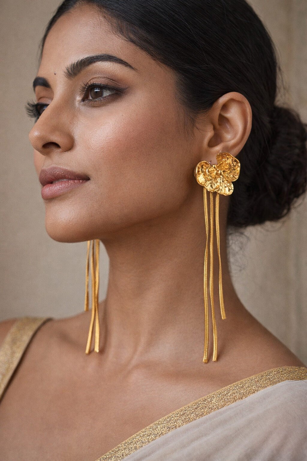 The warm gold tone complements Indian skin tones beautifully, making these earrings a versatile choice for ethnic wear, fusion outfits, and contemporary looks.