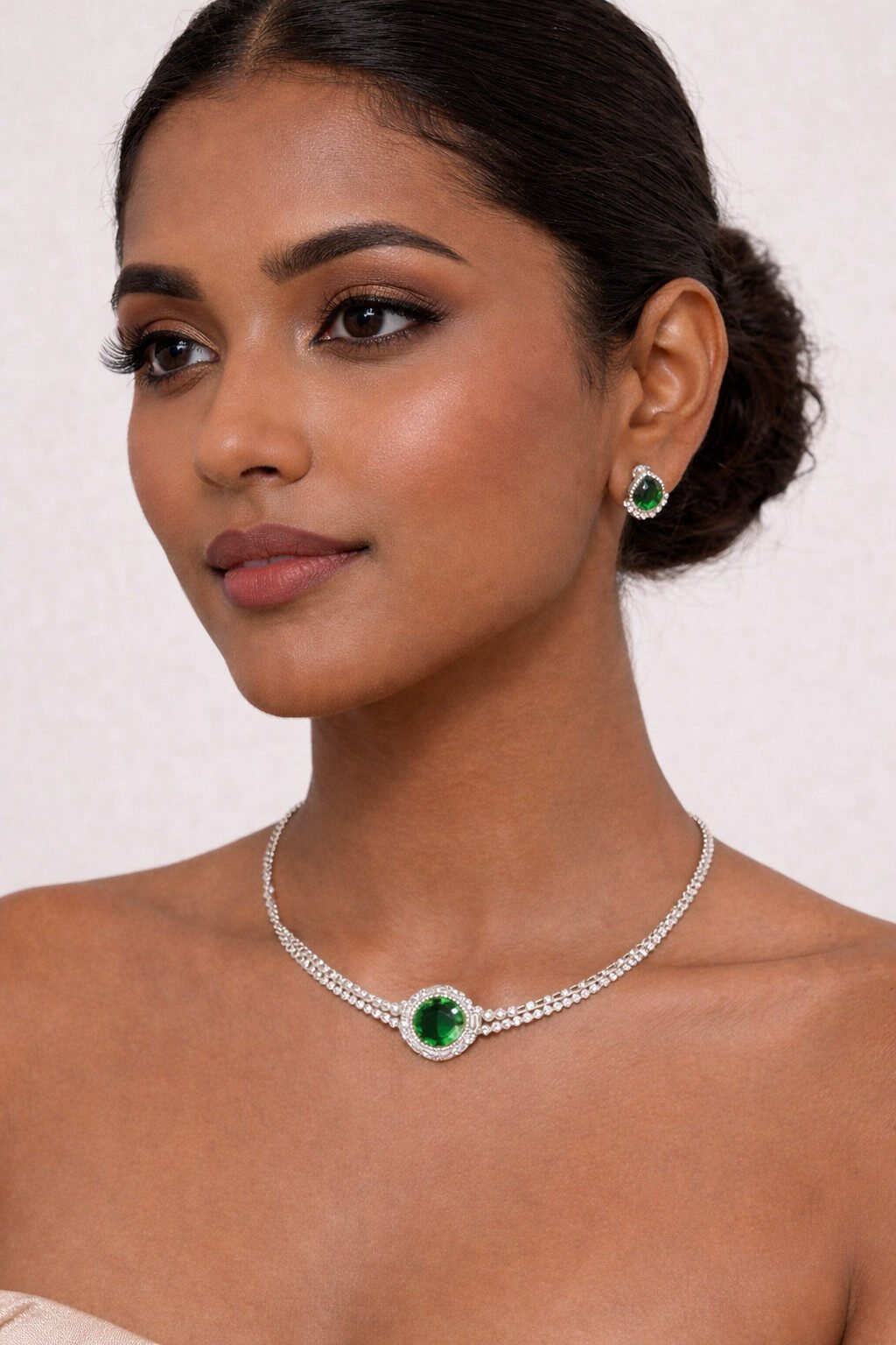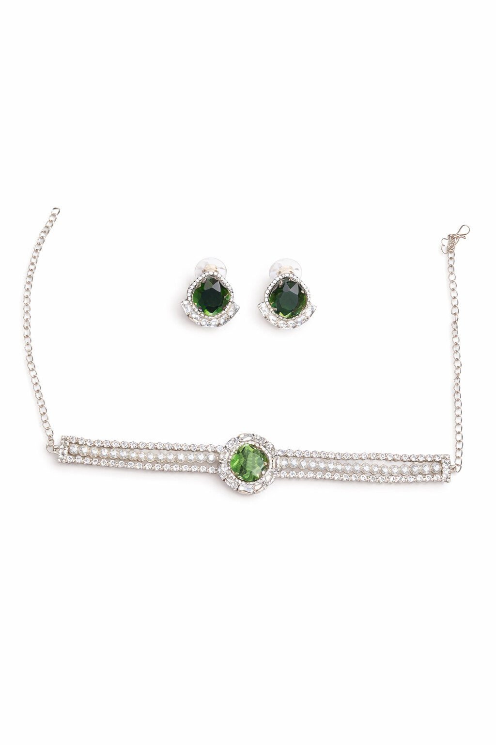 Crafted for comfort and durability, this jewellery set comes with an adjustable necklace chain for a perfect fit. Whether paired with sarees, lehengas, gowns, or ethnic fusion outfits, this green AD stone jewellery set adds a rich and classy finishing touch.