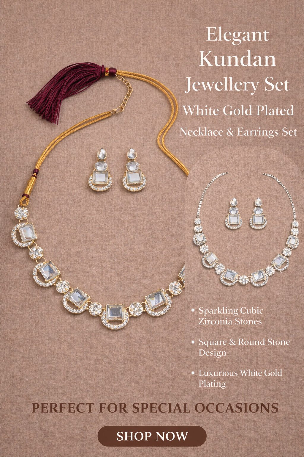 • ✔ Luxurious White Gold Plated Finish